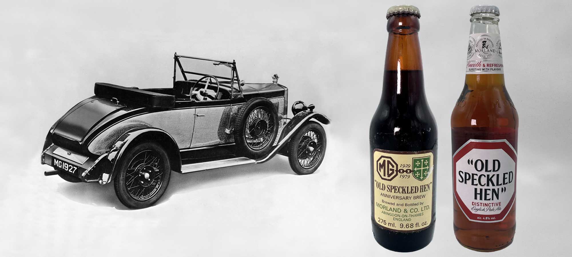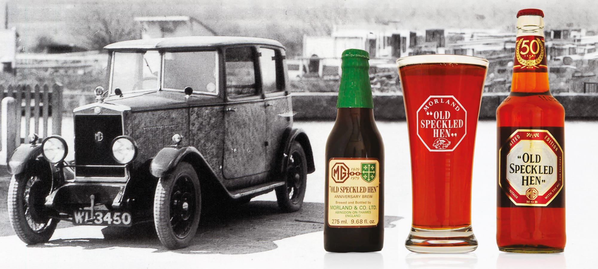 Meanwhile… back in 1979, MG was about to celebrate the 50th anniversary of the opening of their factory in Abingdon. The company approached the large and well known brewery in the town, Morland, to ask about the possibility of a limited production beer to assist the factory and townsfolk alike along with their celebration of the anniversary. Morland responded with a special pale ale, featuring a specific gravity deliberately set at the anniversary-matching figure of 1050. The name chosen for the celebratory brew was the one seen to be most historically appropriate for the links between Abingdon and MG, ‘Old Speckled Hen’
