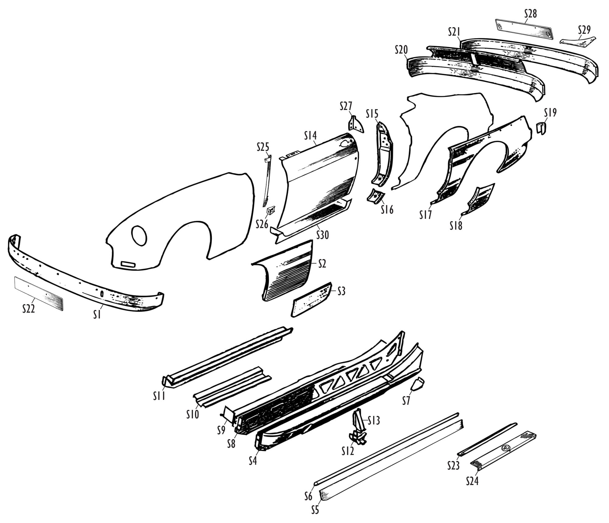 | S4 | MB48L | 84.00 | Sill, Outer, Assembly, LH | MGB & GT, 1962 on (all) |